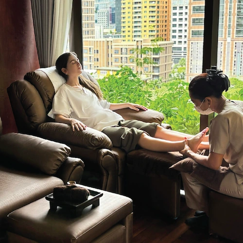 นวดไทยซิกเนเจอร์ของ Hansar thai wellness ที่ผสานการนวดไทยร่วมกับการกดจุดสัญญาณแบบราชสำนักเพื่อให้ได้รับทั้งการผ่อนคลายและคลายกล้ามเนื้อชั้นลึกได้อย่างตรงจุด